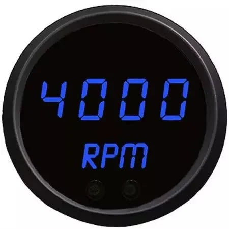 Tachometer - Mini - 9900 RPM - Digital - 2-1/16 in Diameter - Blue LED - Black Face - Each