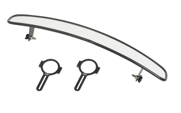 Mirror - Rear View - Wide Angle - 17 in Wide x 3 in Tall - Clamp-On - 1.75 in Tube Mount Brackets Included - Aluminum - Black Anodized - Kit