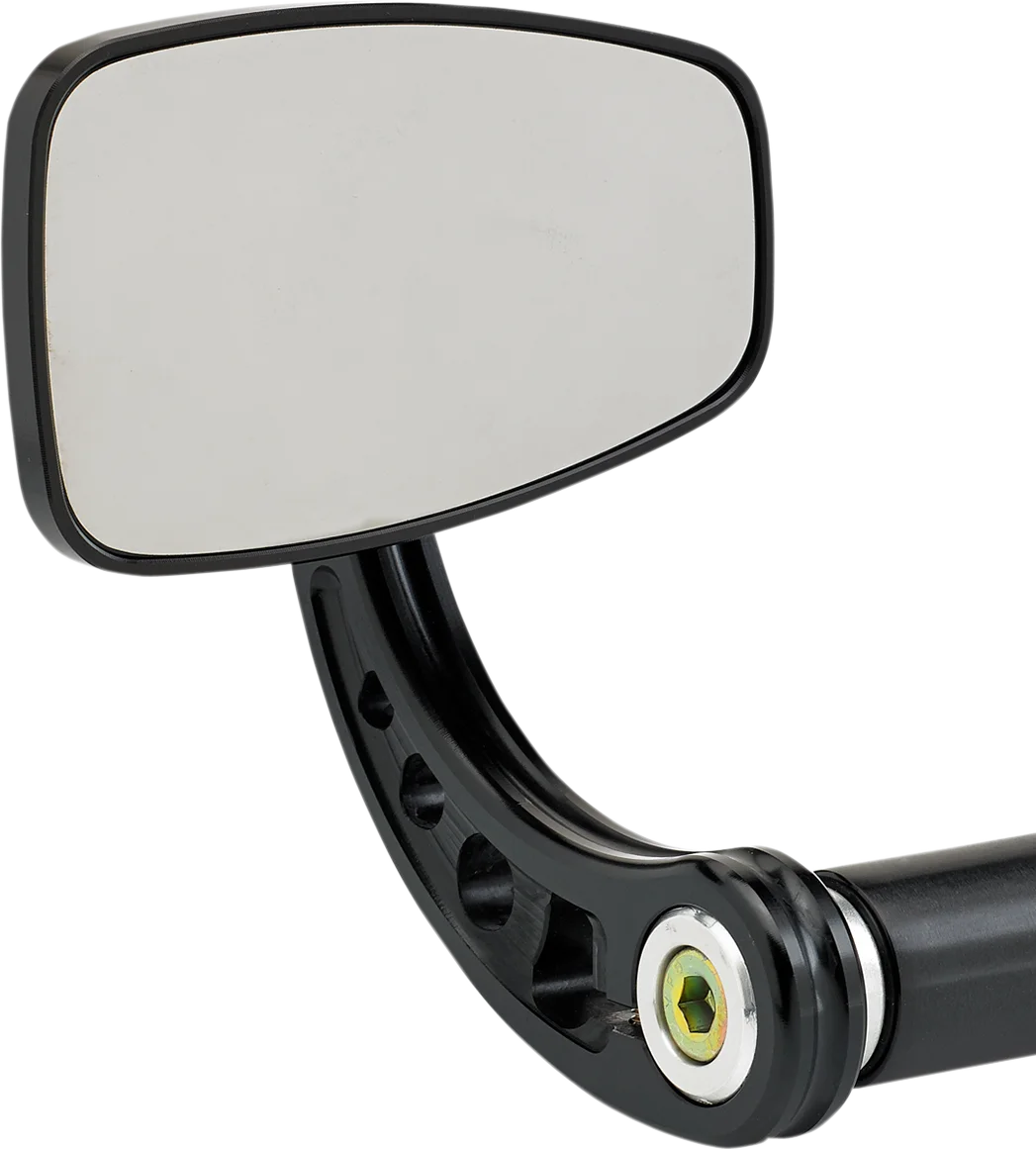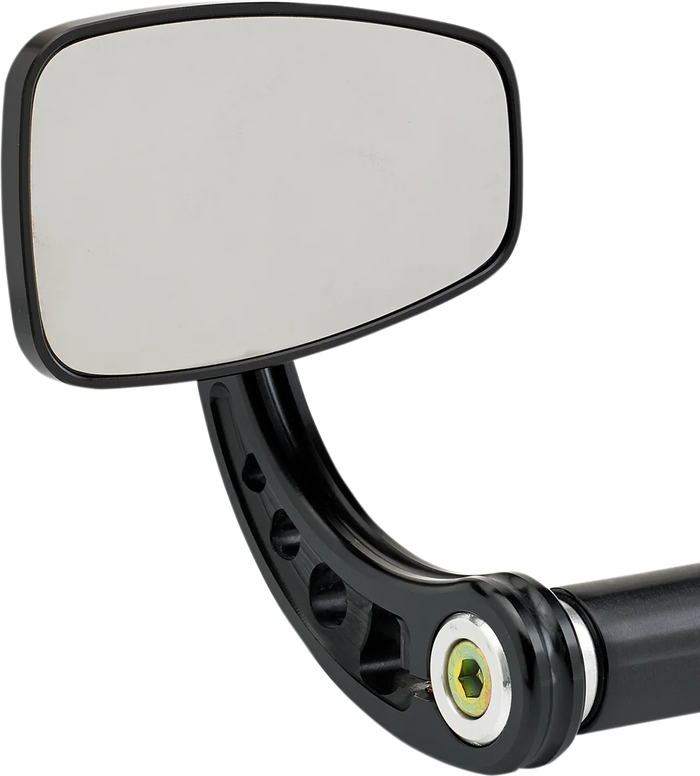 Features a convex mirror glass. CNC machined from billet aluminum (not cast), light-weight, strong, and fully adjustable in every direction to fit just about everyone. Super solid units reduce vibration and make for a clearer image in the mirror. With little modification, these units can be mounted through the ends of most existing grips, by drilling or boring the grip end. Made in USA.