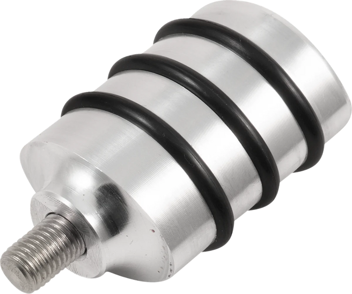 Billet aluminum peg doesn't damage shoes. CNC machined from 6061 billet aluminum. Works as shift peg and brake pedal. O-rings can be replaced. Simple installation. Dimensions: 2" (51 mm) long x 1 3/8" (35 mm) wide x 1" (25 mm) thick. Made in the USA.