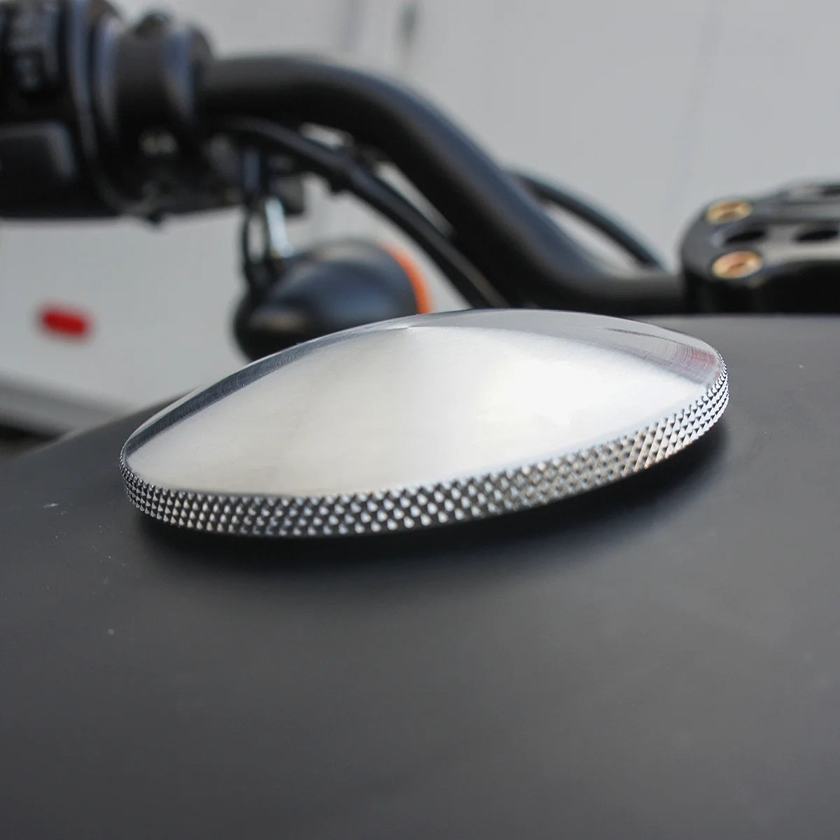 Made with design for a much easier removal over the stock smooth-sided gas cap. Super-clean and low-profile design features all CNC-machined billet aluminum construction throughout. High-quality gas cap base has right-hand threads and is vented. 3" Diameter, 1/4" thick at the edge and 1/2" thick in the center. Made in the USA.