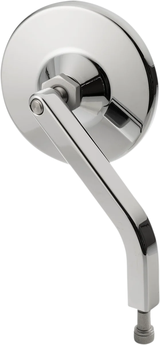 Mirror head swivels on a corrosion-free stainless steel ball joint that provides super smooth action and longevity. Classic builder-inspired design that's great for mounting upside down. Adapters available for Triumph's, Indian's and metric models. Mirror heads can be locked in place or adjustable. Direct bolt-on for Harley-Davidson hand controls. Designed to match stock HD mirror location. CNC machined from 6061 billet aluminum. Dimensions: 4-1/4" x 1-11/16" x 5-1/2". Made in the U.S.A..