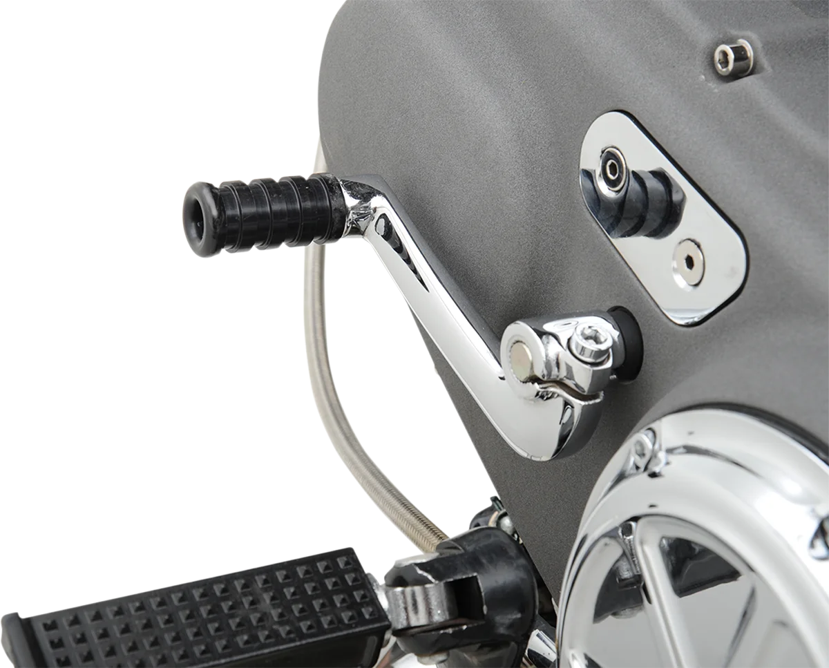 Much lighter than stock and have an angled design for better road clearance when cornering. Replaces stock rubber or cast iron units. Shifter peg is fully CNC-machined from 6061-T6 aluminum. Super strong, yet lightweight one-piece construction. Made in the U.S.A..