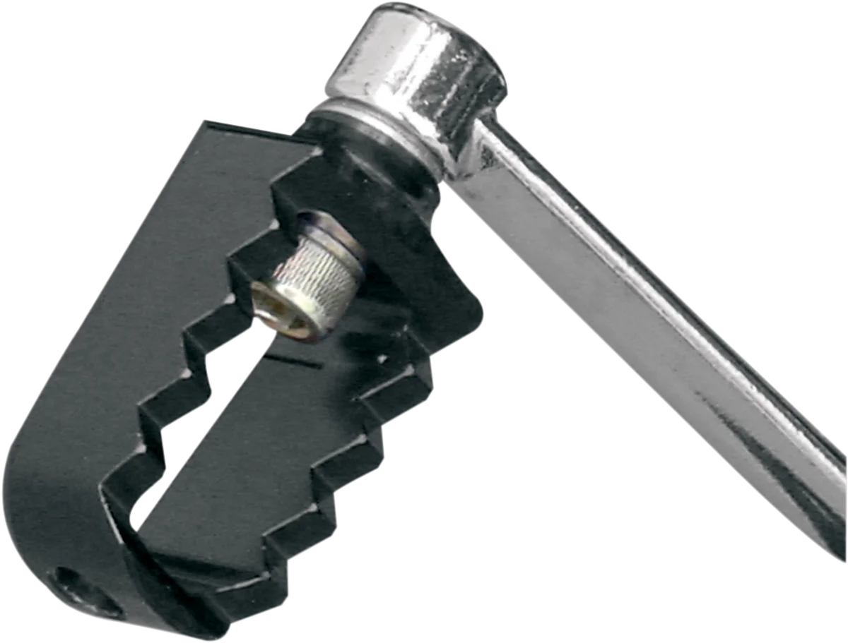 Give your bike a unique design twist with these all-billet aluminum adjustable serrated footpegs. Fully CNC-machined from solid 6061 T-6 bar. The comfortable serrated foot surface area provides a good "bite" onto the bottom of your shoe. Serrated shift pegs have serrations on the top surface only, and the bottom side is smooth to provide non-shoe-damaging up-shifts - installs easily to most stock H-D shift arms with a threaded 5/16"-24 mounting hole. New ribbed shift peg is our round version of the serrated peg - smooth round surface won't scuff the surface or heel of the boot when shifting the bike. Made in the U.S.A..