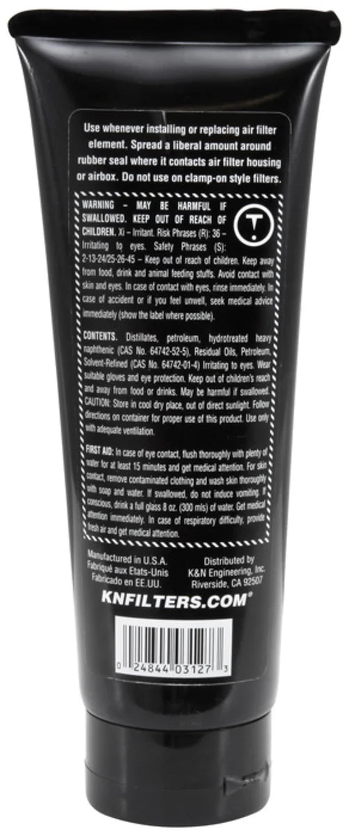K&N Sealing Grease 99-0704 provides an airtight fit around sealing surfaces on all types of air filter elements. It resists heat and will not melt or run off. K&N Sealing Grease is designed to ensure the filter stays sealed in rugged environments. It is not to be used on clamp-on filter elements. K&N Sealing Grease 99-0704 comes in a 6 ounce tube.