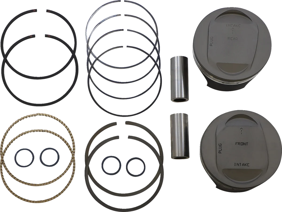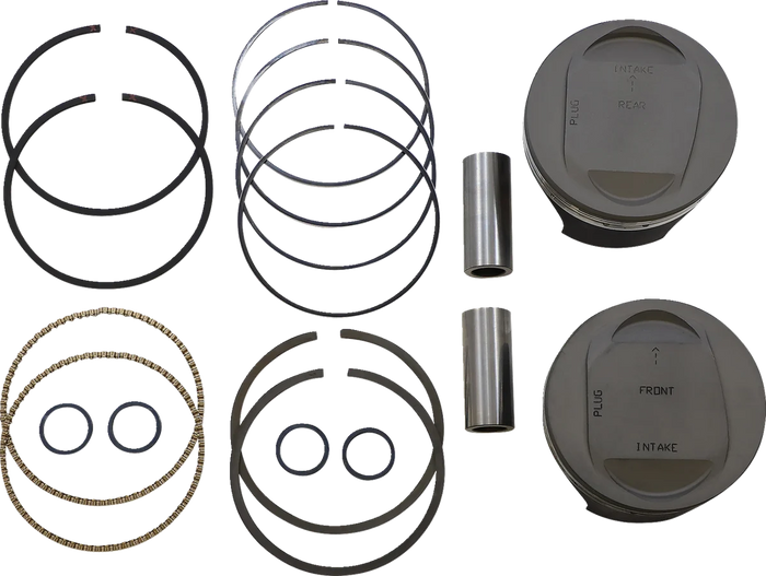 New skirt coating technology is applied to the entire thickness of the piston-to-wall clearance for a zero install clearance; coating then abrades in on start-up to hone for the perfect fit per cylinder. Skirt coating eliminates piston rock for the best possible ring seal with no piston slap noise. Hard anodized crown to aid in heat deflection and to reduce corrosion from alcohol fuels. Hard anodized top ring groove eliminates micro welding of the ring to the groove; this maintains a flat and smooth surface for the best ring seal and top ring groove. Includes piston, rings, pins and clips. Made in the U.S.A..