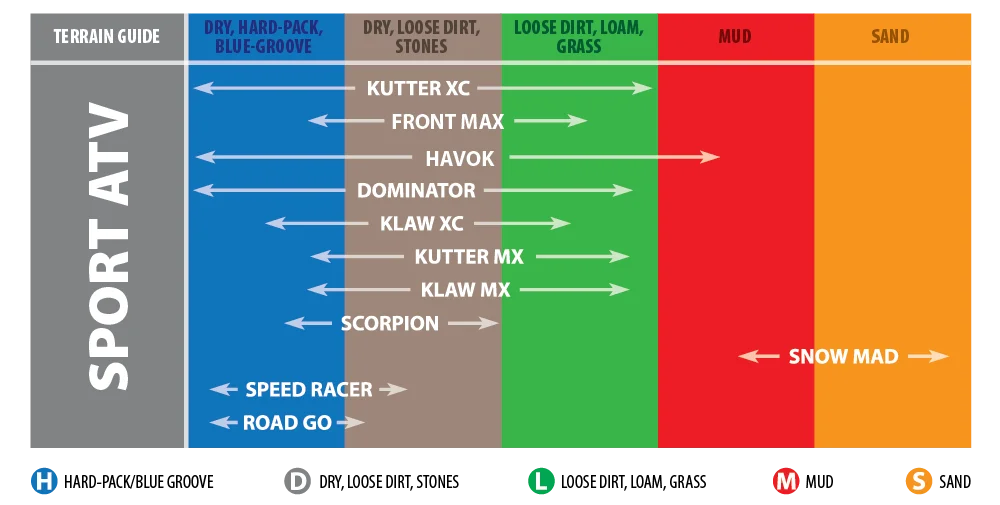 Rear specific tread pattern designed for ATV/utility turf/hard surface applications. Deep lugs for self cleaning in all conditions. Excellent design for dual sport riding. NHS (Not for highway service)..