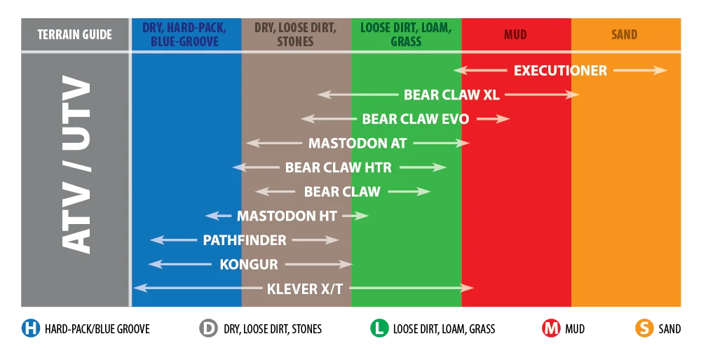 6-ply rated casing allows for exceptional puncture resistance while keeping weight to a minimum. Unique shaped transition knobs for improved cornering traction & handling. Tread pattern designed to perform exceptionally across all terrains. Large center knobs for improved straight line and braking traction. Recessed-dimpled knobs for improved wet traction. The successor to the Bearclaw. NHS (Not for highway service)..
