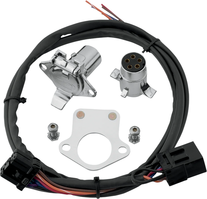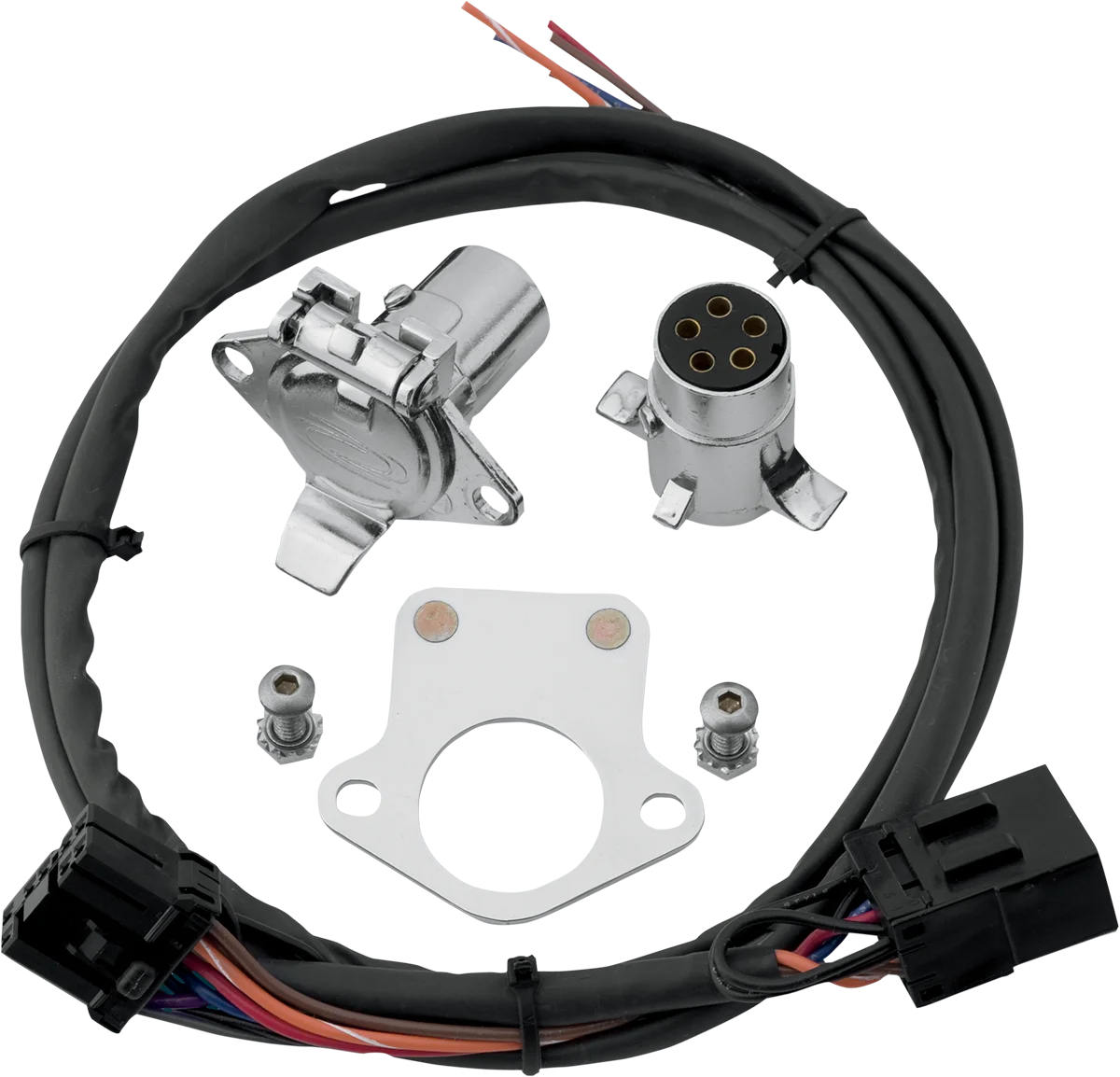 Designed to work with Khrome Werks receiver and bumper trailer hitches. Include 56" plug-and-play wiring harness, male and female 5 pin connectors with mounting bracket kit that bolts directly to the safety chain bracket on the hitch. Made in the U.S.A.. 8 pin Multilock plugs.