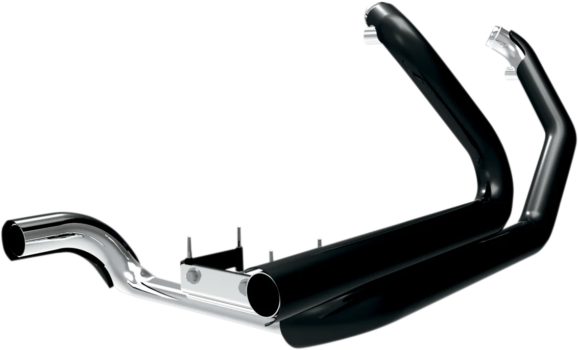 Reduces heat transmission to the rider and passenger by routing the exhaust under the frame instead of under the seat. Lighter system offers more flow and makes more top-end power than the factory system. Feature 1-3/4" 16-gauge mandrel bent, interconnected headers and 220° full-coverage heat shields. Front pipe crosses over to the left side and is securely mounted to the transmission oil pan. Crossover pipe is formed from the 1-7/8" tubing for increased ground clearance and no cross-sectional area loss. Hidden inter-connect for maximum top-end horsepower, improved low-end torque and sound dampening. Includes (2) 18mm O2 sensor ports, plugs and all mounting hardware. Accepts any '95-'16 OEM-style dresser mufflers (sold separately). O2 sensor ports and plugs, gaskets and all mounting hardware included. Made in the U.S.A..