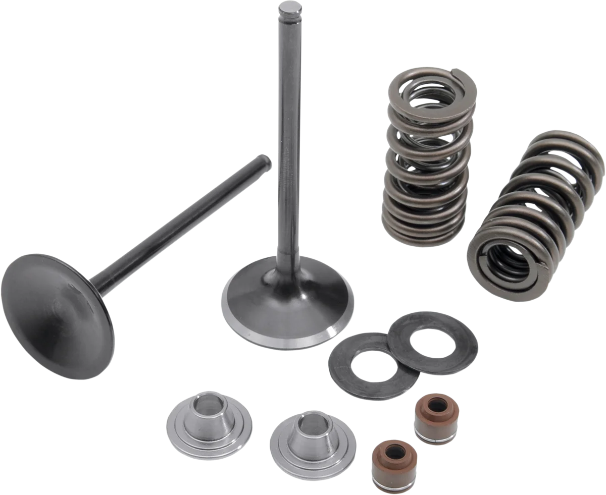 Stainless steel conversion kit includes only what's needed to convert your head to the long-life stainless steel Black Diamond intake valves. Extends the life of the valvetrain and intake components by as much as 4x over the OEM titanium parts. Includes forged one-piece stainless steel intake valves, wound chrome-silicon heat-treated wire valve springs, ultra-light titanium retainers and hardened steel bases. Components are created using Finite Element Analysis (F.E.A.) software, as well as proprietary camshaft analysis and spring design software. Specifically designed and engineered for each application. Made in the U.S.A..