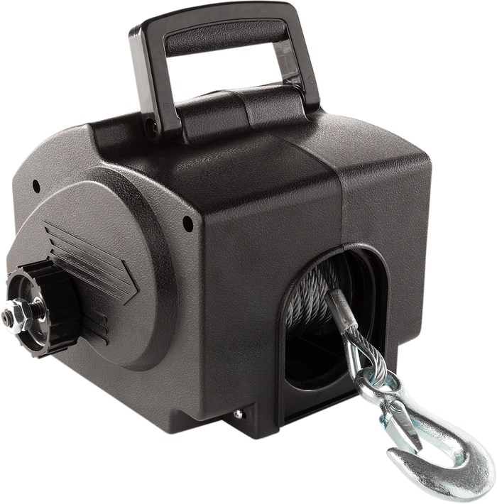2500 pounds capacity. Remote control included. Hand crank for manual use. Include power battery cables. Heavy duty 5.4 mm gage steel cable of 30ft/9m of length. 12 V DC motor, 25 amps, 300 W input power. Carrying accessories bag included.