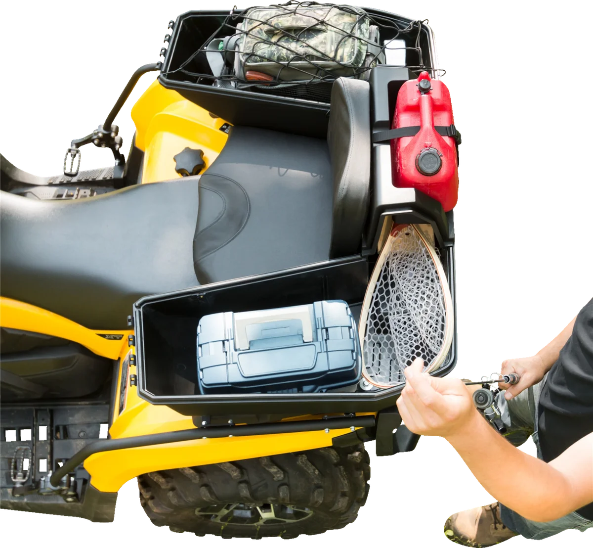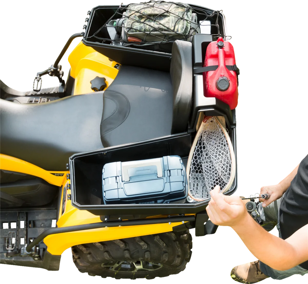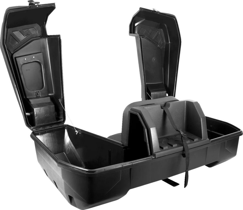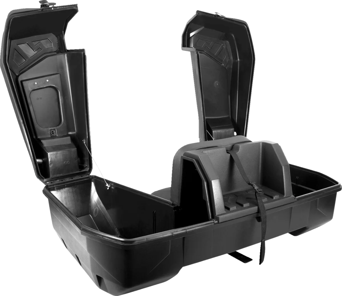 Wide variety of configurations and can be adapted to any situation. 115 Liter (30 gallon) storage capacity with enough space for two MX helmets, lots of tools and even a gas can. Glove compartment on the left side of the trunk. Offers direct access inside the trunk while seated. Optimized grip angles and elbow supports for more comfort. Integrated trunk cover gasket combines with a secure, efficient locking mechanism for an airtight and watertight seal. Dimensions: 43" L x 30" W x 17" H. Quick and easy installation.