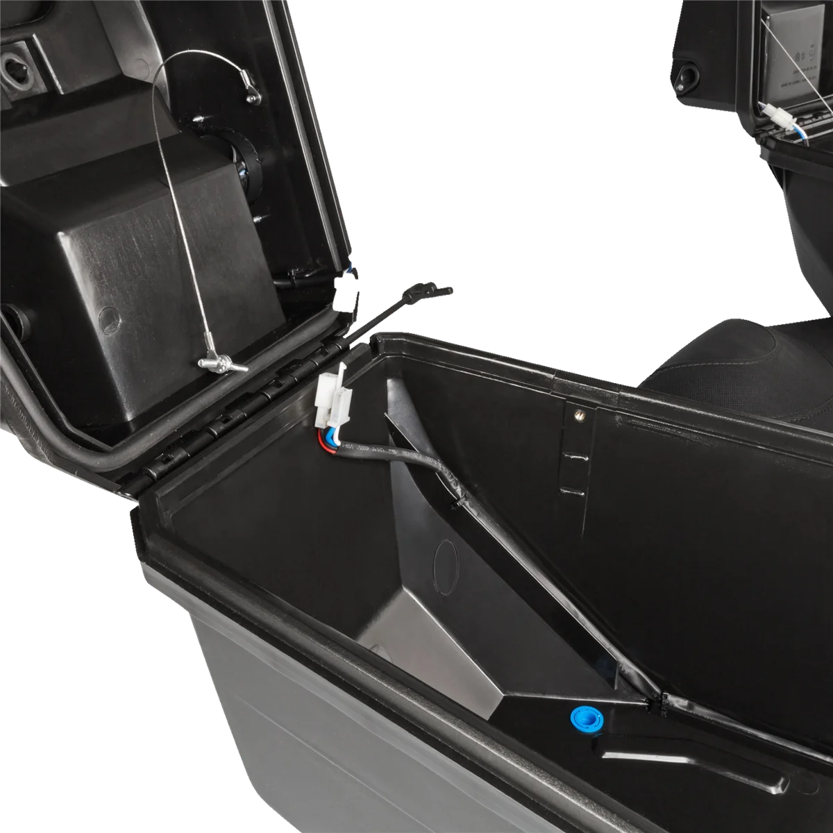 Wide variety of configurations and can be adapted to any situation. 115 Liter (30 gallon) storage capacity with enough space for two MX helmets, lots of tools and even a gas can. Glove compartment on the left side of the trunk. Offers direct access inside the trunk while seated. Optimized grip angles and elbow supports for more comfort. Integrated trunk cover gasket combines with a secure, efficient locking mechanism for an airtight and watertight seal. Dimensions: 43" L x 30" W x 17" H. Quick and easy installation.