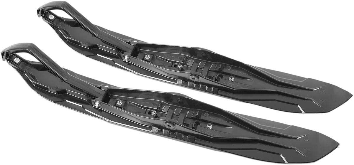 Sold in a complete kit that includes two Rush skis, two ski adapters, two J-edge runners with 60° carbide and two black handles. Keel designed to reduce steering effort and darting. Raised rear portion. Integrated bridge makes installation quicker while providing extreme rigidity. Pre-drilled holes for easy installation of runners. 5.5" W; weighs approximately 4 lb.