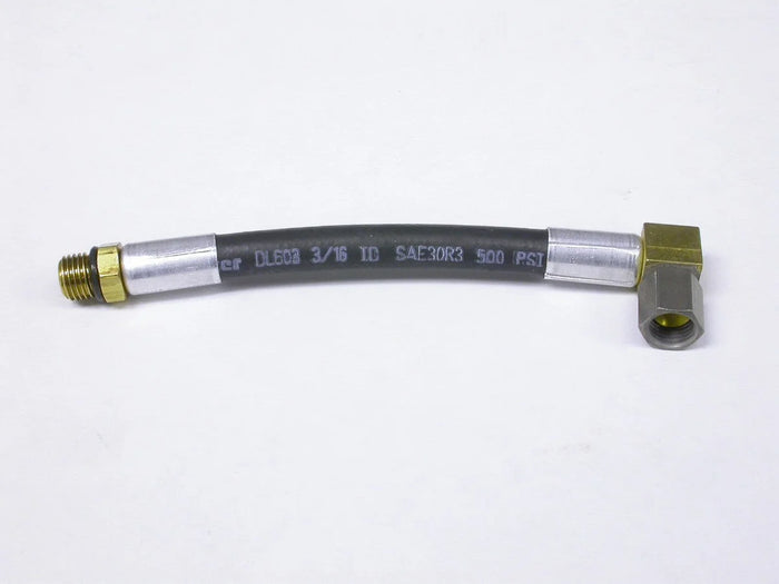 Fuel Injector Line - 9.5 in Long - 3 AN Hose - 3 AN 90 Degree Female to 3 AN Straight O-Ring - Brass / Rubber / Stainless - Black / Natural - Each