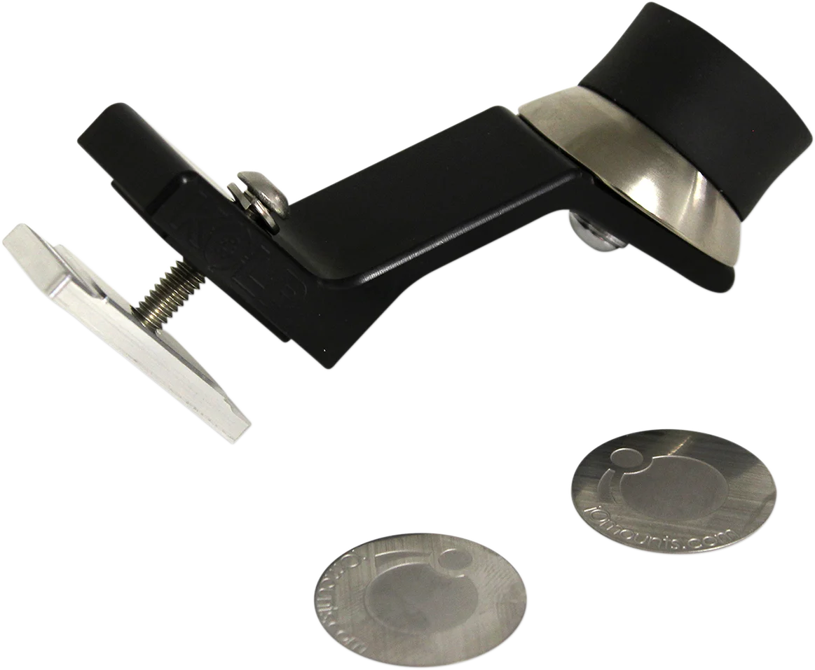 Universal UTV rocker switch mount easily assembles to standard dash rocker switch slot (.830" x 1.450") for quick access to cell phones/devices. Patented ultra-strong magnetic interface retains devices in the most severe off-road environments. Infinite angle adjustment for devices. Mount retention lip secures device on magnet for added retention. Includes mounting system and two adhesive iOadapt Discs.