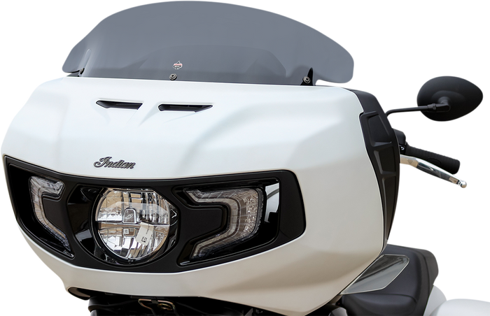 Install easily using stock mounting hardware. Maintain stock windshield height adjustability. Innovative design features “hips” at the outer edge of the shield that re-routes the air to add downforce and aid stability. "Flip" at the top sends clean, less turbulent air to rider and passenger. Manufactured from dual-side hard-coated polycarbonate material for outstanding impact strength. Made in the U.S.A..