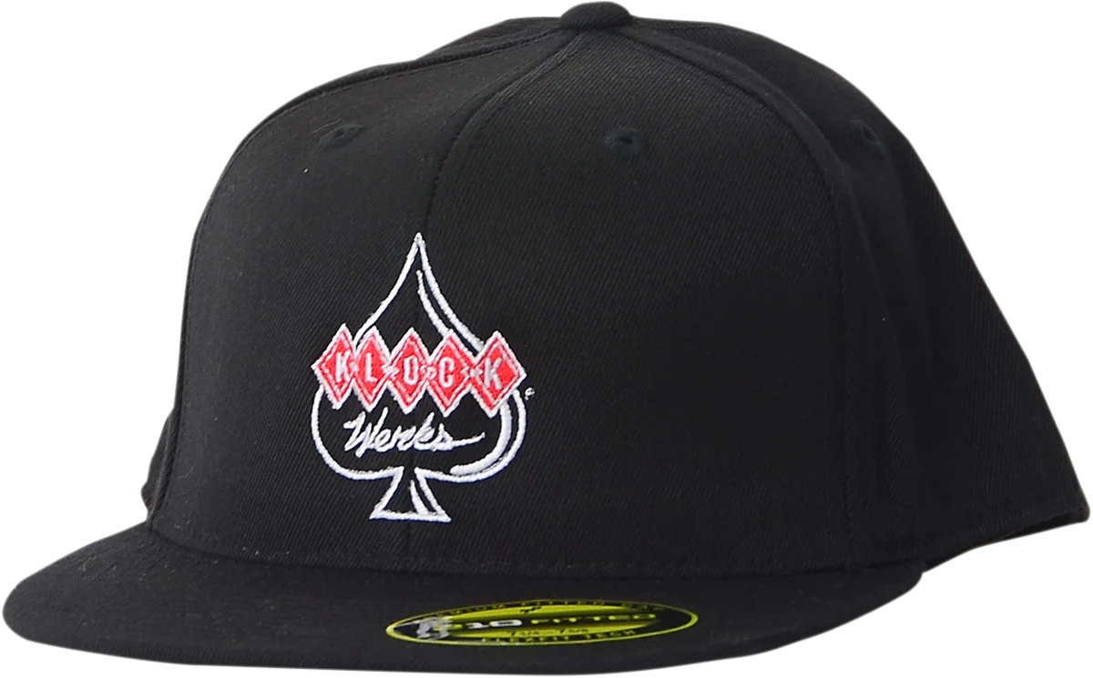 Klock Werks logo front and center of the hat. Features a flat visor with matching color undervisor, 3 ¾” crown, structured and high profile. Custom embroidered patch adhered to the original FlexFit comfort stretch hat. Hats are lightweight, durable, breathable and stretch easily, yet retain their original shape after continuous use. 83% Acrylic / 15% Wool / 2% Spandex blend. Made in the USA.