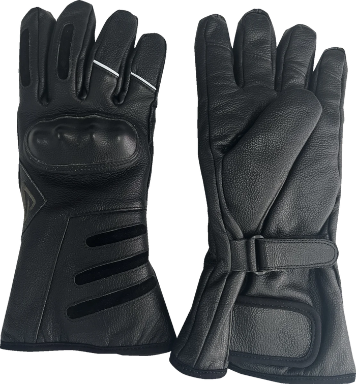 Engineered to deliver enhanced feel and sensitivity with the bike's controls, so you can stay in control and focused on the road ahead. Premium cowhide leather construction. Experience non-stop heat up to 135°F (57°C) that connects directly to vehicle's DC power system. Primaloft Silver 80g insulation offer excellent thermal properties and provide a high level of protection, stretch, and flexibility. Max Heat: 135°F @ 13W each. Power: 12V DC 1.1 Amp each. ZEPTO heating fibers run throughout glove, including to the tip of every finger. Porelle® breathable water-resistant membrane. High-impact TPU knuckle protection. Pre-curved ergonomic fit. Adjustable Velcro wrist closure. Cuff length optimized for under-jacket fit. Power them with a portable battery (sold separately) if not riding or connect them directly to the sleeve of your Gen-X4 Jacket Liner in seconds. Power Options. For use with Gen-X3/X4 Heated Jacket liner : No additional wiring is required; simply connect via the convenient hideaway plugs at the end of each sleeve.. For use with Gen-X3/X4 Heated Vest : Requires the Snap-on Harness for Heated Gloves & Glove Liners (SKU 100226-1).. For standalone operation (i.e. direct connection to the 12V battery of your powersport vehicle) you need the Coax Battery Cord (SKU 100227-1) and the Y-cord with Temperature Controller for Heated Gloves & Heated Glove Liners (SKU 100273-1), which allows you to fine-tune the temperature..