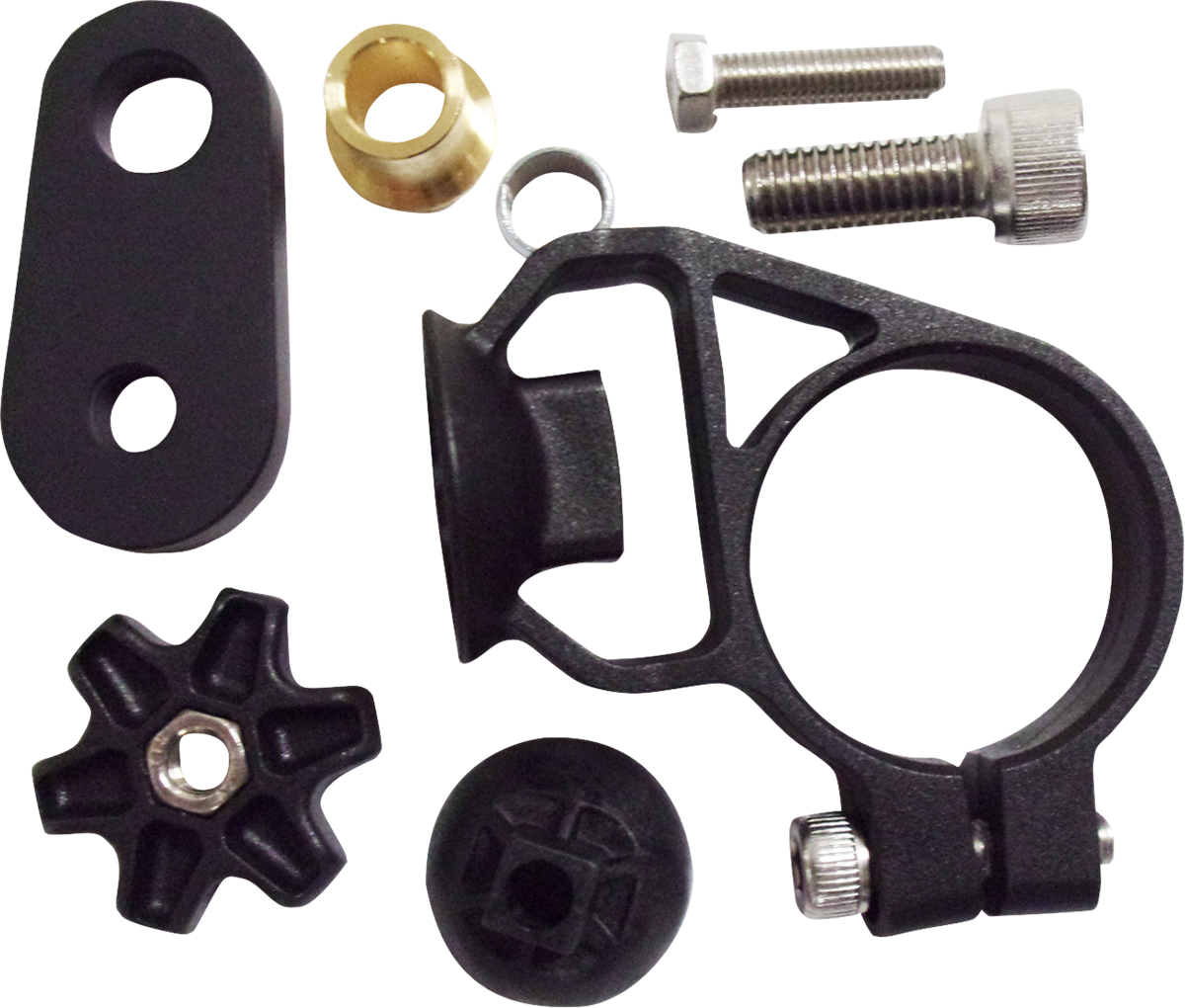 Easy adjustable screws, located on the back, lock the desired positioning securely into place. Fits 7/8” to 1-1/4” handlebars. Six-way adjustable. Quick release & lock function design. Allows user to find best position with free adjustment and 360° rotation. Works with M8 or M10 thread size.