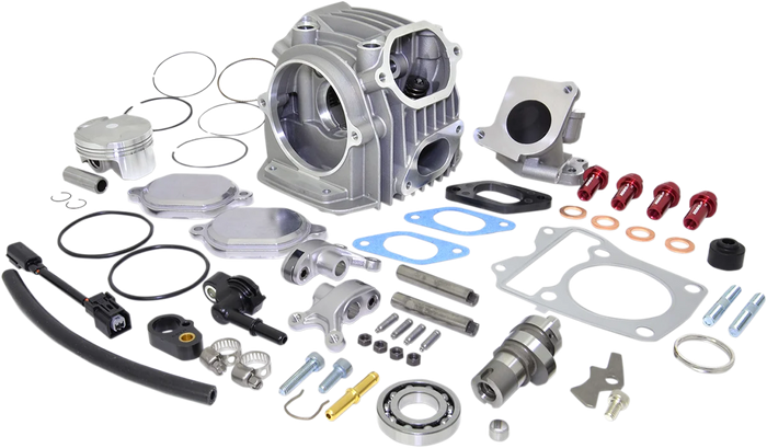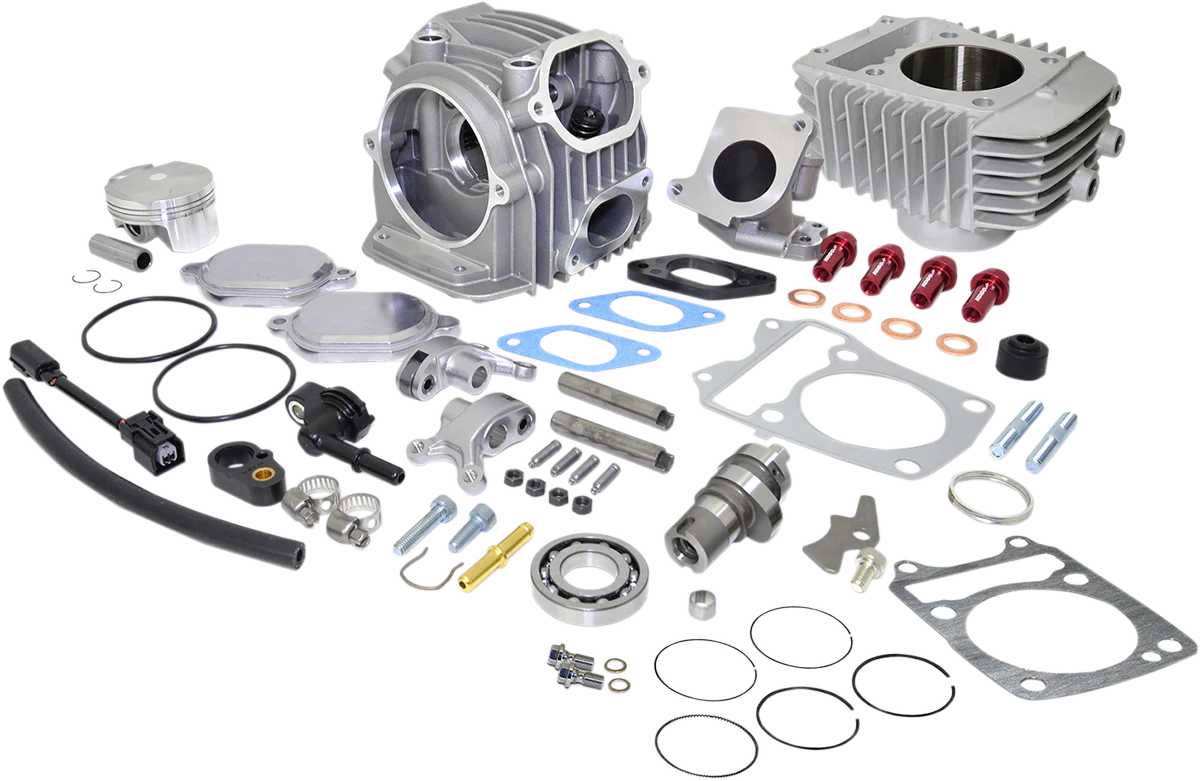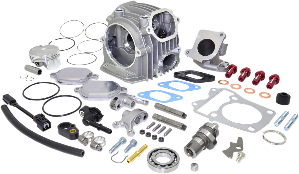 Ideal engine part to complete Koso's big bore kit. Unique four-valve design increases air flow and performance. Provides more power and torque. Features a forged piston, stainless steel 24 mm intake valves and 20 mm exhaust valves.