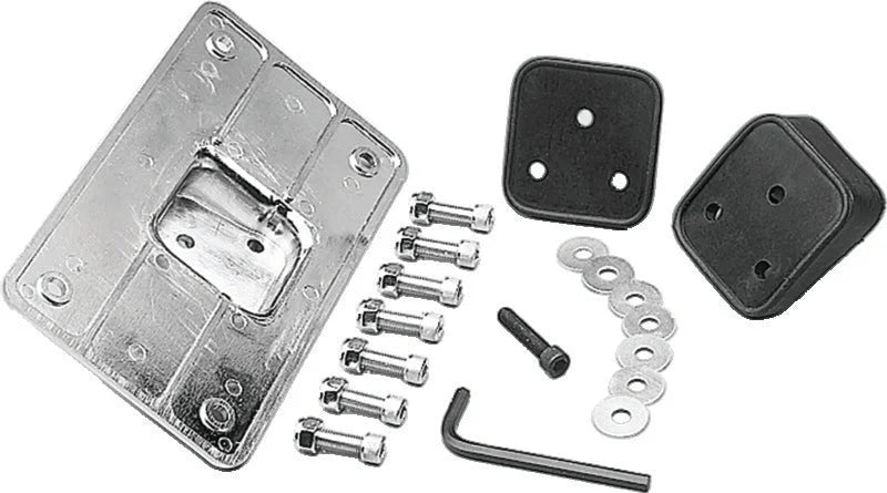 Designed to replace Harley's standard three-bolt license plate bracket, this baby streamlines your fender by tilting the plate back.