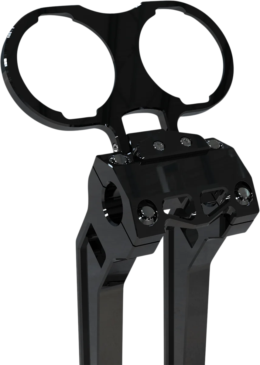 For use with LA Choppers billet performance risers (sold separately). Direct bolt on installation. Fit 1” and 1.25” diameter straight and pullback risers. Made in the U.S.A..