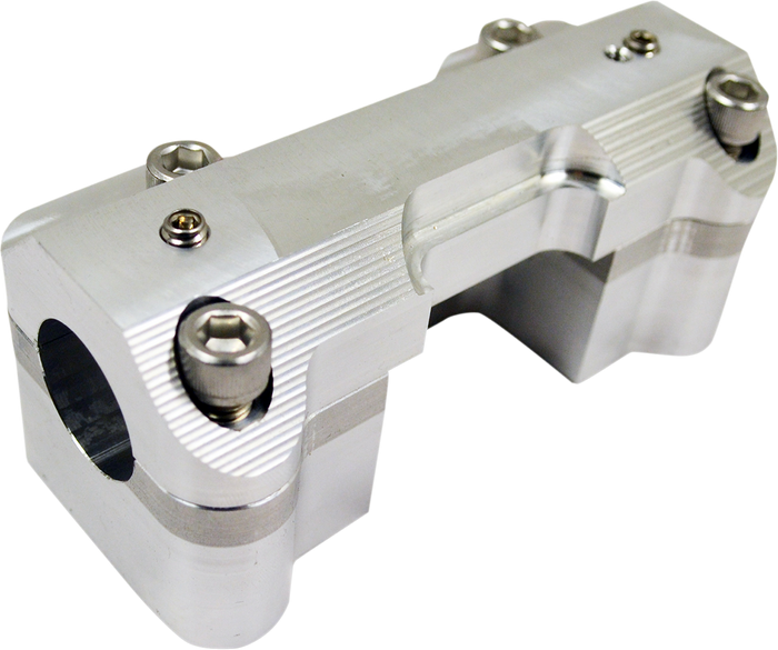 Fit under the stock cover. Include all necessary installation hardware. CNC-machined from 6061-T6 aluminum with a raw finish. Tapped for 1/2"-13 riser bolts. Top clamp has tapped holes to lock handlebars in place. Come with set screws. Made in the U.S.A..