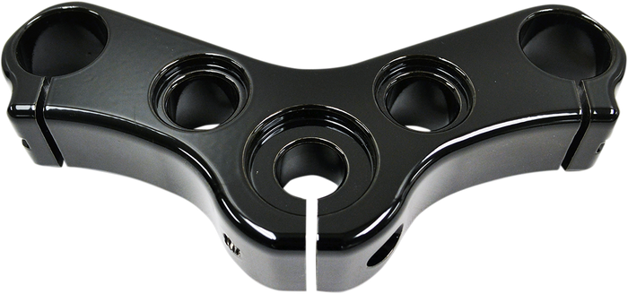 Custom upper triple tree allows you to install bushings and risers. Greatly expands your custom handlebar installation options. Will work with OEM turn signals. Gloss black powdercoat finish that won't fade, unlike anodized finishes. Use with LA Choppers handlebar angle adapters for the ultimate custom look.