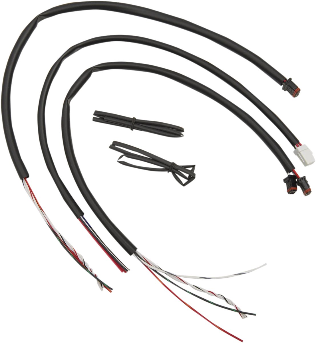 Saves time by streamlining handlebar wiring jobs. Includes wiring for electronic throttle control and all necessary materials to extend the wires for hand controls. Terminals crimped on one end. Cut-to-length design will accommodate up to 20" Ape Hanger handlebars. Includes OEM color matching wires and heat shrink. Made in the U.S.A..