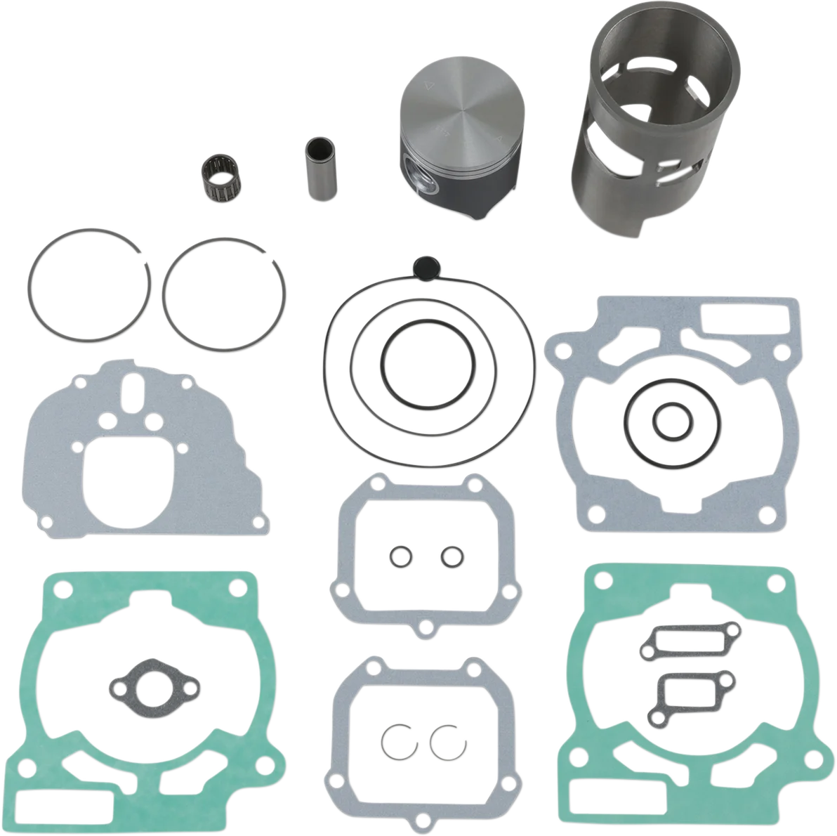 The foremost compatible top-end rebuild kit all in one box. Feature a Moly2000 centrifugally-spun, cast cylinder sleeved iron bore to provide better ring seal for better compression, more torque and more horsepower. 2-stroke kit comes complete with wear-resistant Moly2000 centrifugally-spun, cast cylinder sleeve, matching pro-forged or pro-cast piston kit, wrist pin bearing and complete top-end gasket set.