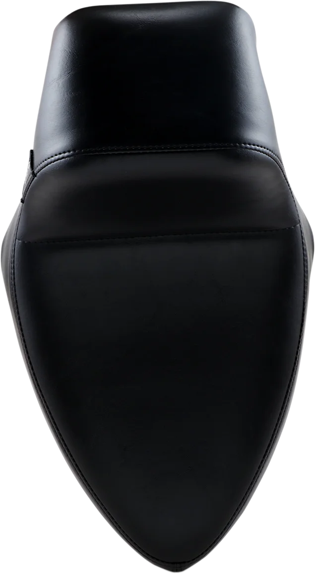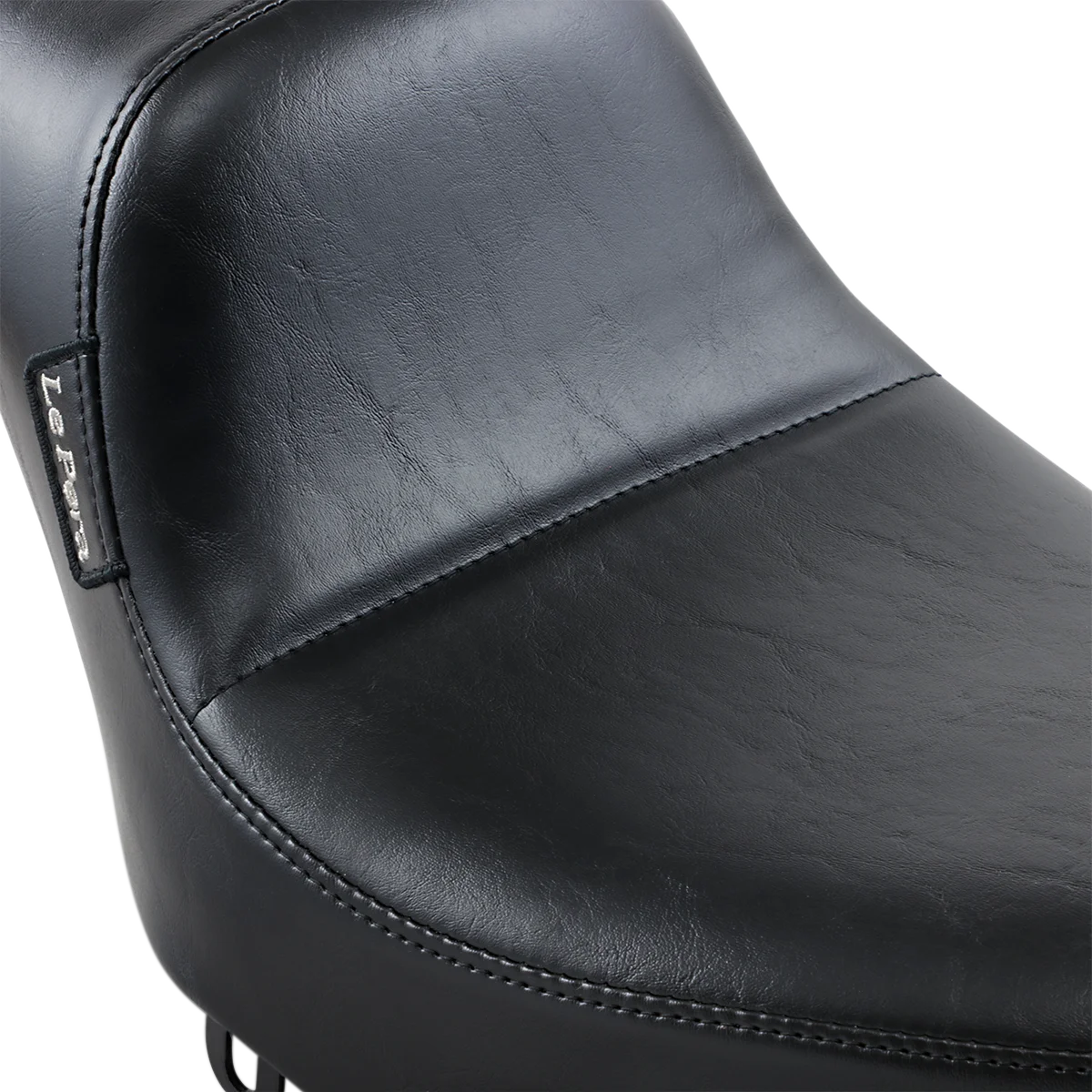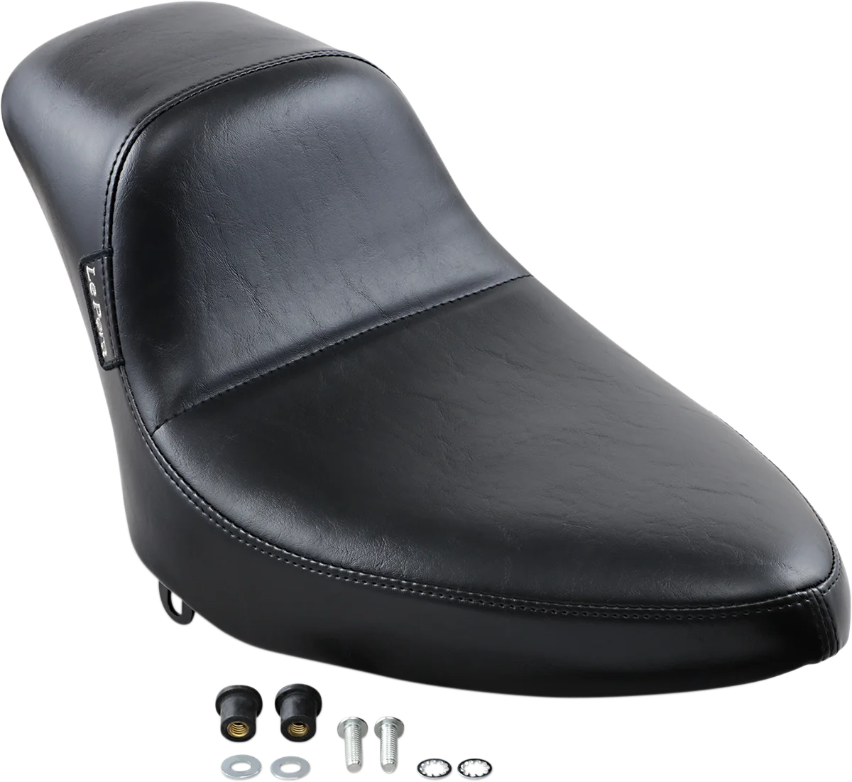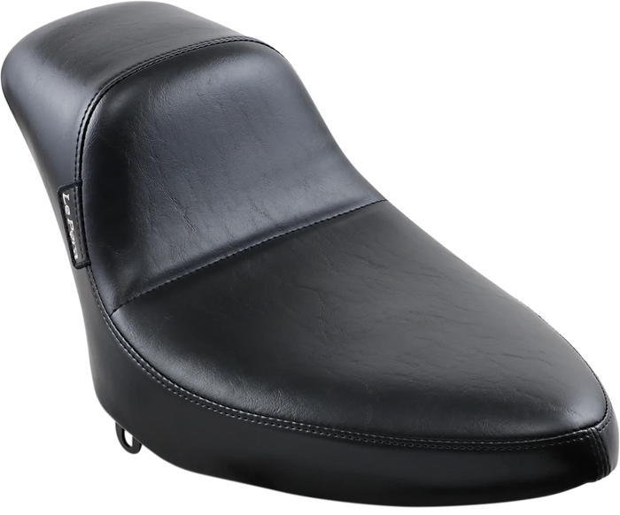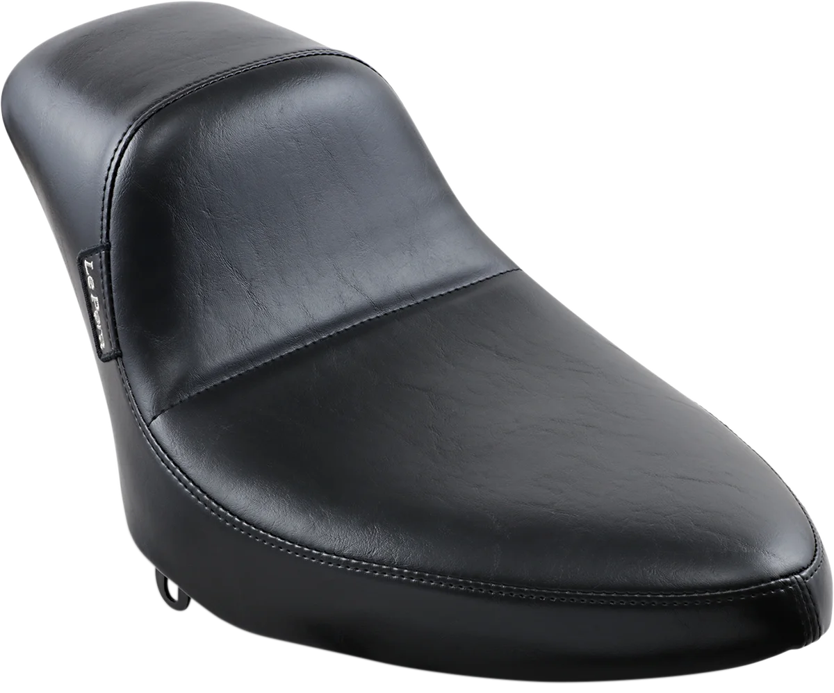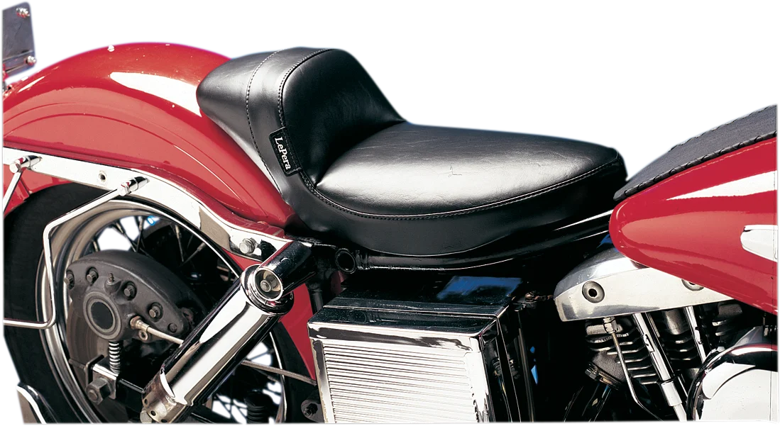Made with a molded one-piece foam foundation and covered with premium-grade black vinyl on a 16-gauge powder-coated steel base plate. Unique Le Pera seat features a low, sleek style while retaining back support for maximum rider comfort. Carpeted bottom protects the fender. Made in the U.S.A.. This style of seat will not allow the use of a pillion pad..