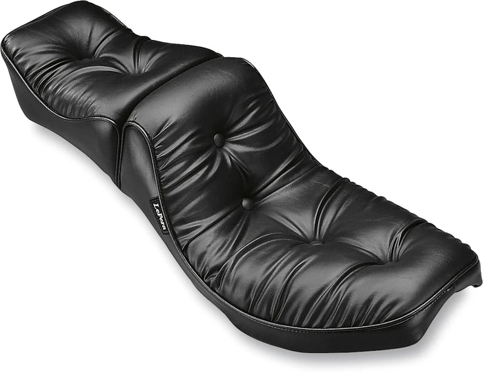 Plush, two-piece pillow style assembled on a sturdy steel baseplate. Features durable black Naugahyde® covers accented by recessed buttons over high-density foam. Carpeted base helps protect painted surfaces. Made in the U.S.A.. Will not fit FXR SuperGlide unless OEM hinge assembly is purchased..