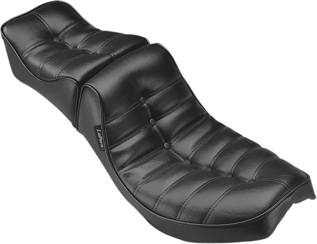 Engineered to provide maximum comfort and style. Wider, two-piece design with a formed steel base that covers the frame. Mounts like a stock seat and has a molded foam interior and expanded black Naugahyde® cover. Double-stitched with a carpeted bottom to protect the fender. Made in the U.S.A..