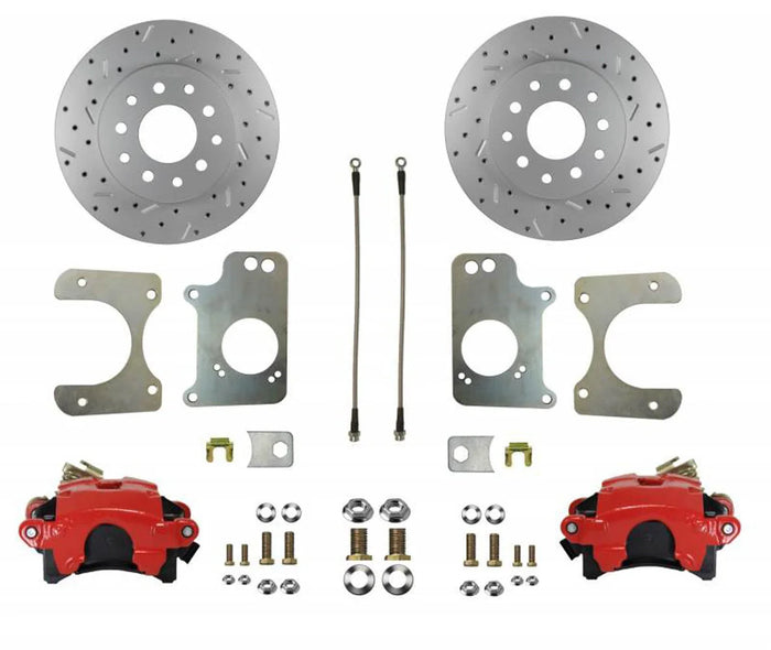 Brake System - Maxgrip XDS - Disc Conversion - Rear - 11 in Solid Rotors - Brackets / Hardware - Iron - Red Powder Coat - GM F-Body 1982-91 - Kit