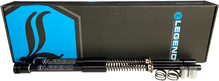 Designed to be used with stock diameter front wheels. Easy installation. Includes two mono-tube, dual chambered damper cartridges, and two top out springs. Performance spring rate. Machined 303 Stainless threaded pre-load adjuster. Increased pre-load range allows the tuning for various riding styles and weights. Ride quality is smooth and controlled. Improves stability, cornering, and traction. Eliminates front-end dive during aggressive braking and maneuvering. Firm feel for high-speed sweeping turns. Eliminates bottoming out on large bumps or potholes. Reduces dragging floorboards and pegs. Designed for optimum performance with Legend rear suspensions. Made by hand in Sturgis, SD USA.