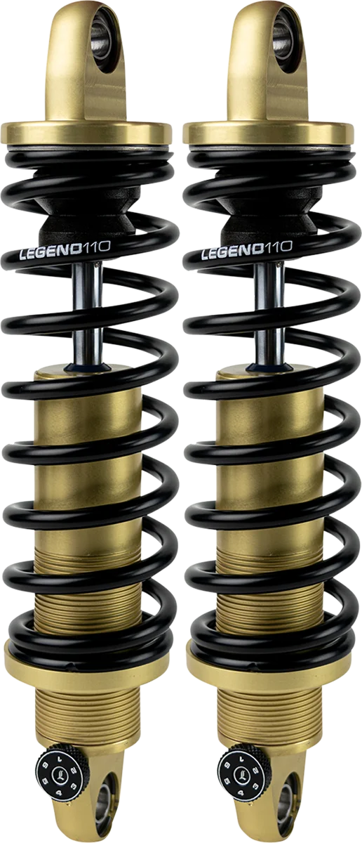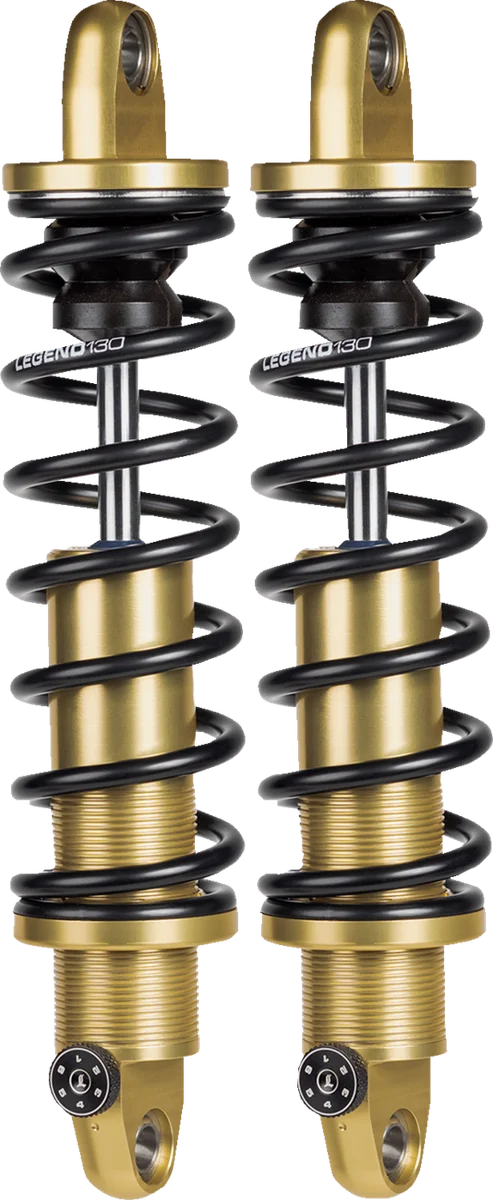 Available in Black, Gold and Clear Type III hard coat anodize. Legend's touring specific coil spring rates provide superior ride comfort, improved performance, and increased resistance to bottoming for all day comfort. Adjusts by hand, no tools needed. Available in 12", 13", and 14", standard or heavy-duty applications. Easy installation and alignment, provided by spherical bearings on both top and bottom mounting points. All the benefits of the REVO shocks above plus six external knob adjustments allow fine-tuning of rebound. Provides optimum rebound performance for any given rider weight, personal ride quality preference, or personal riding style. Light to heavy riders can fine-tune ride preference. Aggressive to casual riding styles can tune to desired quality or personal preference. Made by hand in Sturgis, SD USA. P65 WARNING: Cancer and Reproductive Harm.