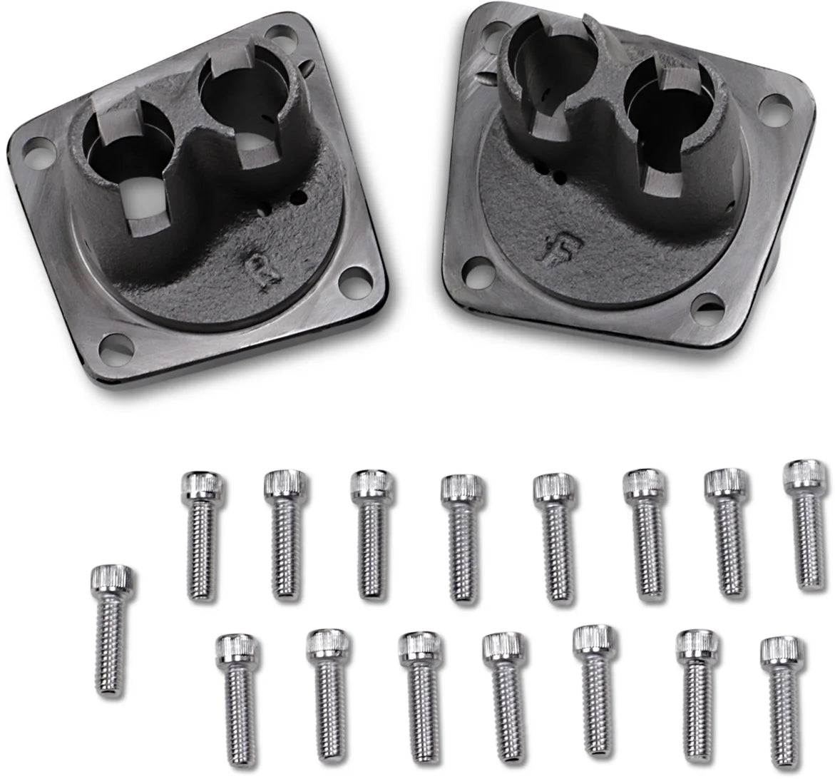 Come complete with two sets of Allen cap screws (1/4"-24 for 66-E76 and 1/4"-20 for L76-84), completely machined and ready for installation. Made from durable cast iron and finished in either black or chrome. Will also fit Panhead motors.