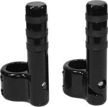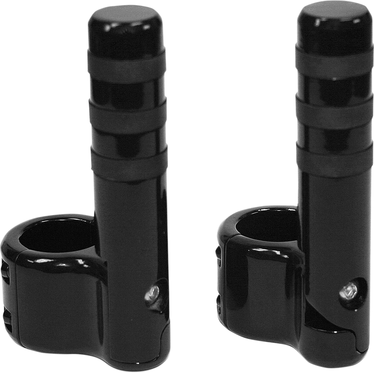 High-quality billet aluminum clamp-on footpegs will fit any highway bar or frame with 1-1/4" or 1-1/2" o.d. tubing including. Pegs flip up out of the way when not in use. Sold in pairs.