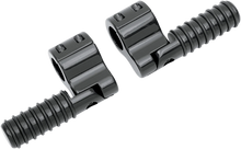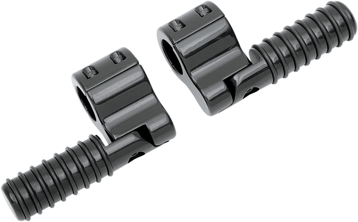 High-quality billet aluminum clamp-on footpegs will fit any highway bar or frame with 1-1/4" or 1-1/2" o.d. tubing including. Pegs flip up out of the way when not in use. Sold in pairs.
