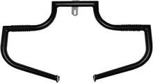 Front bars are made from 1-1/4" high-strength steel for long-lasting durability. Precision bent and welded for a perfect fit every time. Neoprene o-rings provide traction in all climates. Rear highway bars constructed from 1" tubing; compatible with most stock exhaust systems; require removal of rear footpegs/floorboards. U.S. Patent #D361311. Not recommended for use with extended forward controls or extended floorboards..