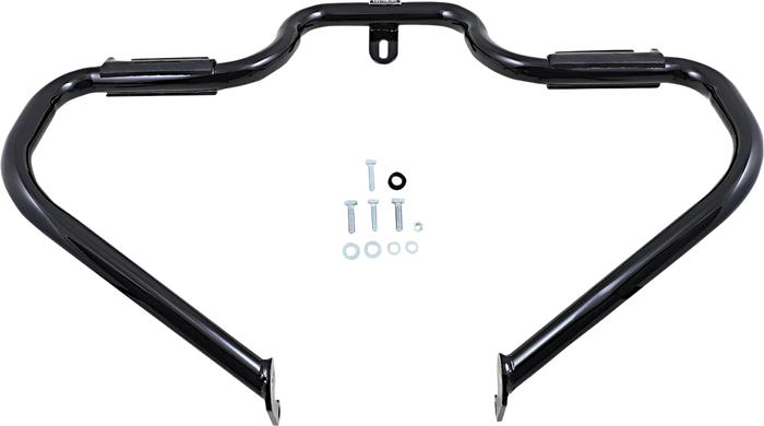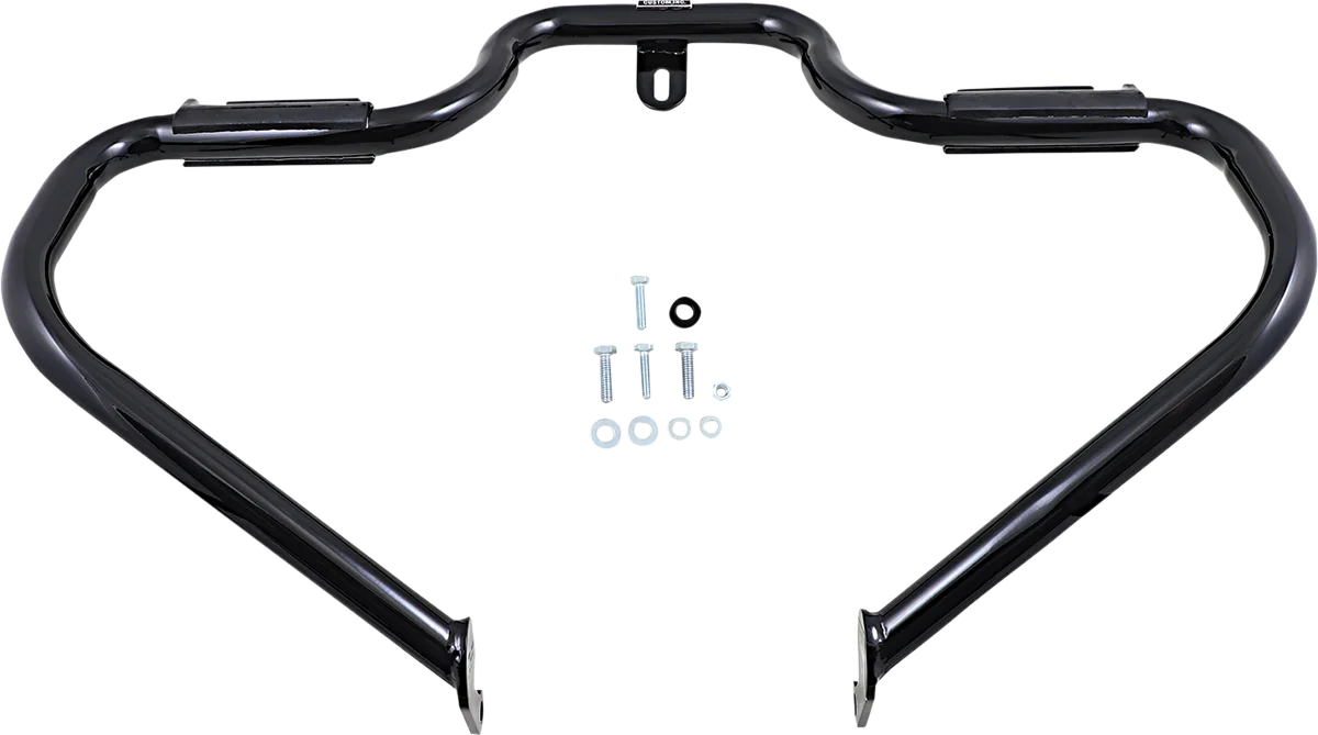 Made from a single piece of high-strength 1-1/4” steel tubing for long-lasting durability. Built-in bonded rubber footrests that provide traction and allow riders to adjust their position. Highway bar with unique rounded corners. Compatible with most stock exhaust systems. Easily installed with included hardware and instructions. Rubber pads are replaceable and come with double sticky tapes. Not recommended for use with extended forward controls/floorboards..