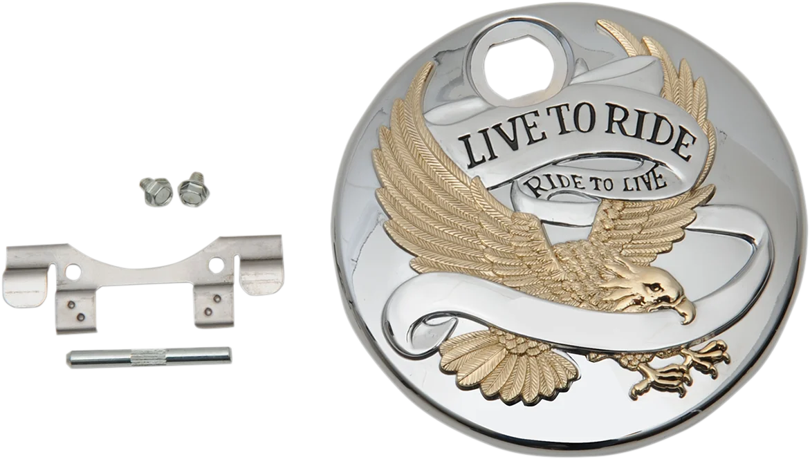 DragSpecialties "Live to Ride" Console Door - Chrome with Gold T22-0150CGA