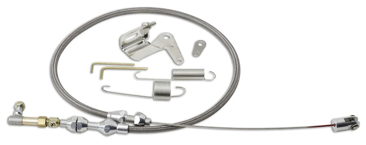 Throttle Cable - 2 ft Long - Bracket / Return Spring - Braided Stainless - Natural - Universal - Kit