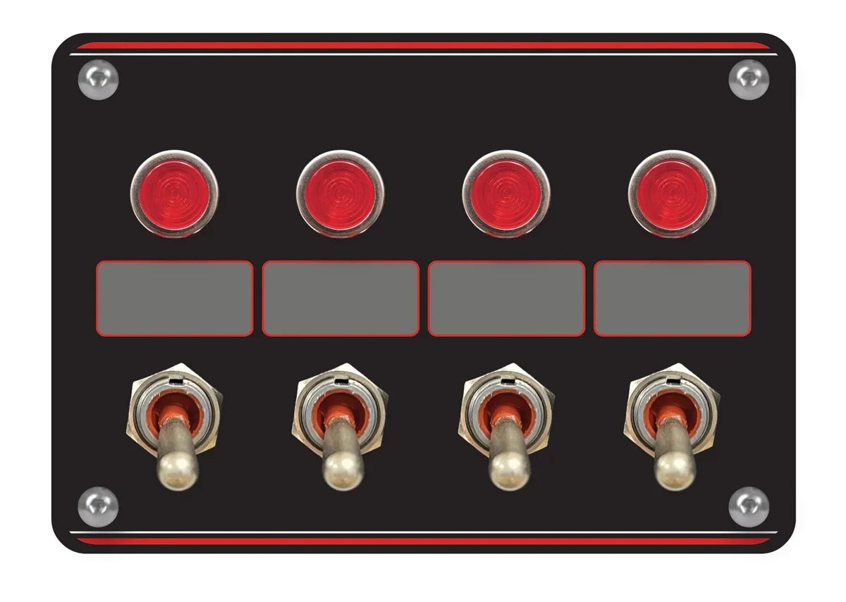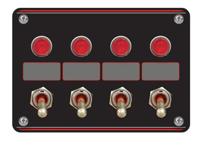 Switch Panel - Dash Mount - Elite - 5.2 x 3.7 in - 4 Toggles - Indicator Lights - Black Anodized - Each