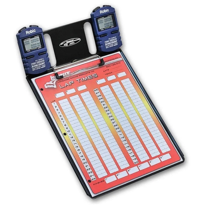 Clipboard - Two Robic SC-606W Stop Watches / Color Lap Charts Included - Aluminum - Black Powder Coat - Each