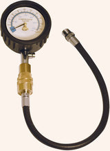 Compression Gauge - 0-300 psi - Mechanical - Analog - 2-1/2 in Diameter - White Face - Black Pointer - 14 mm Plug Adapter - Each
