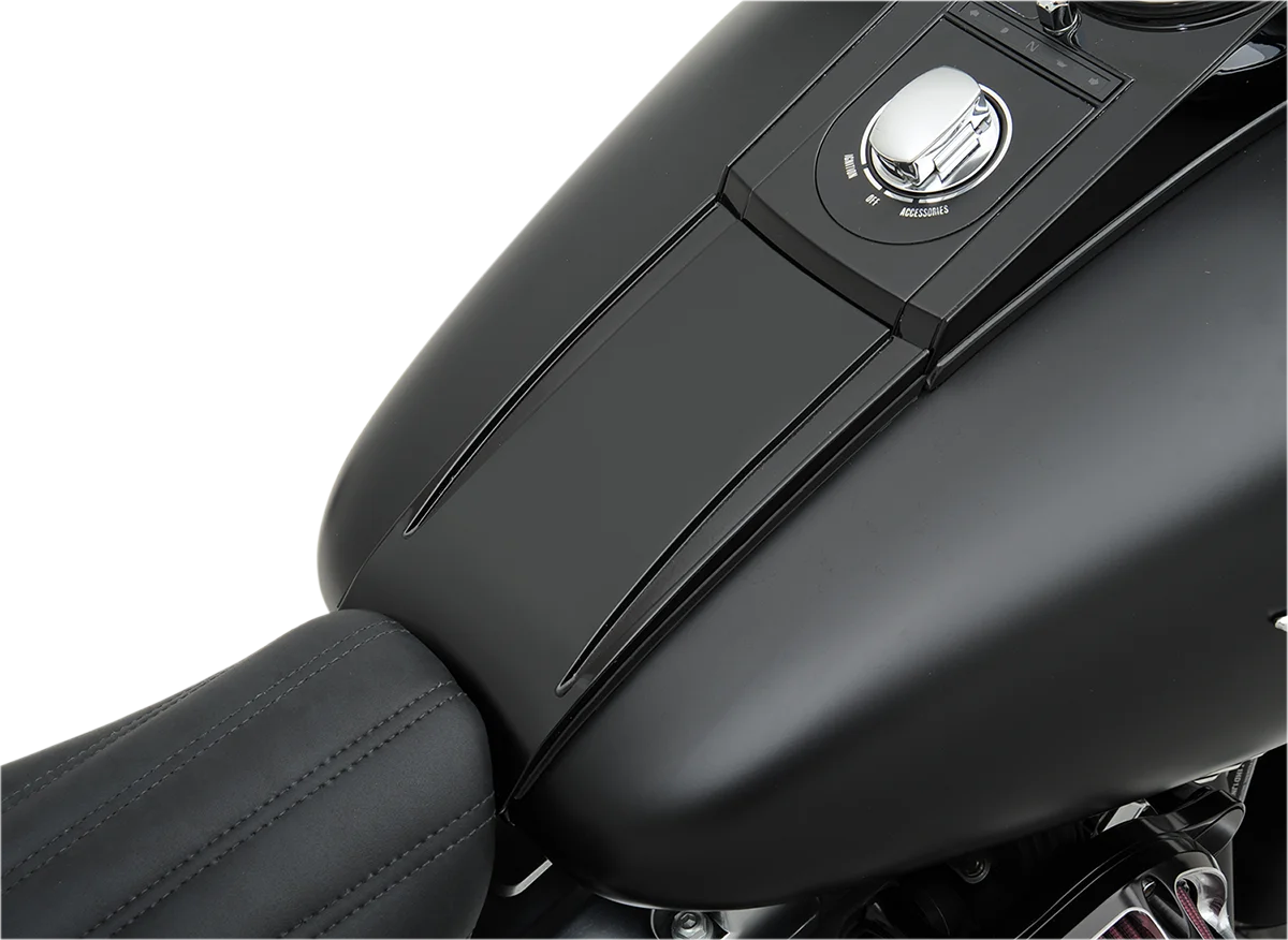 ABS construction with a chrome finish. Continues the accent lines of the dash further down the tank. Comes with paint protector and mounting hardware.