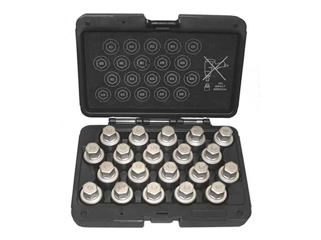 | 2003 | Porsche | Boxster | For use with Porsche external spline drive wheel locks. Includes 20 wheel lock keys and a custom blow molded carrying case. | |